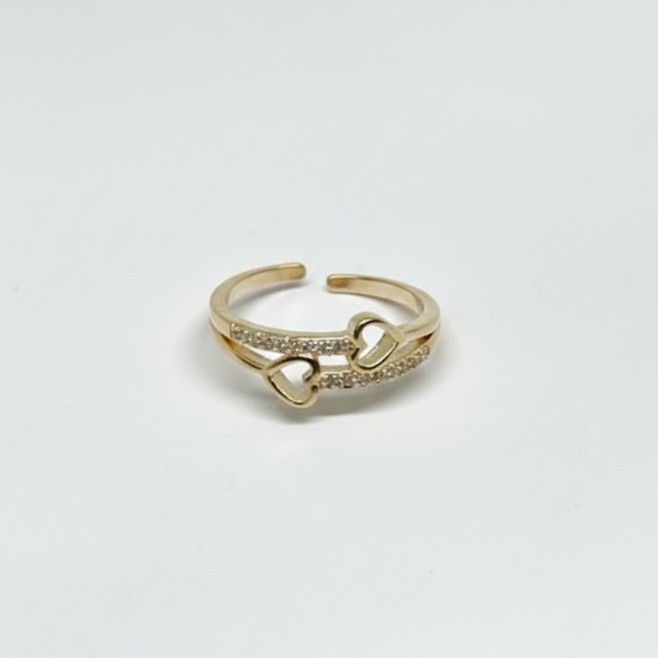ANILLO DOBLE CORAZON SILUETA AJUSTABLE ORO LAMINADO 18K